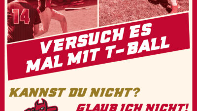 Tee-Ball – auch T-Ball genannt – ist die Variante von Baseball, welche vor allem mit ganz jungen Kindern gespielt wird. Die Baseball-Abteilung des TV St. Ingbert, die Devils, wollen nun zum ersten Mal in ihrer Geschichte T-Ball anbieten. Es sind nun zu allererst die Eltern von 3- bis 6-Jährigen Kindern (Jungen und Mädchen) angesprochen, ihren Kindern die Entdeckung der Reize des Baseball-Sports zu ermöglichen. Zunächst gibt es zwei Schnuppertermine im November und im Januar. Samstag,…