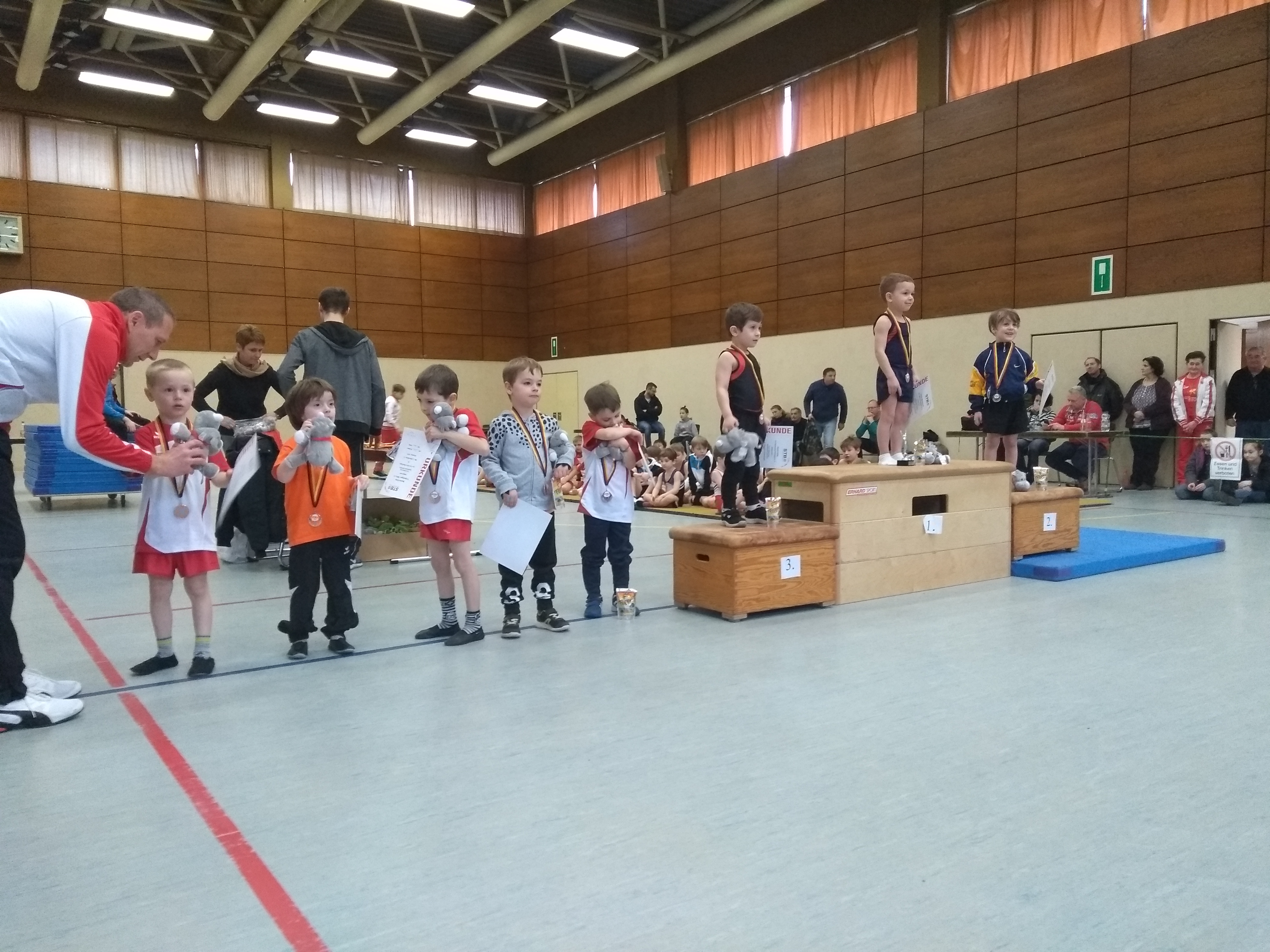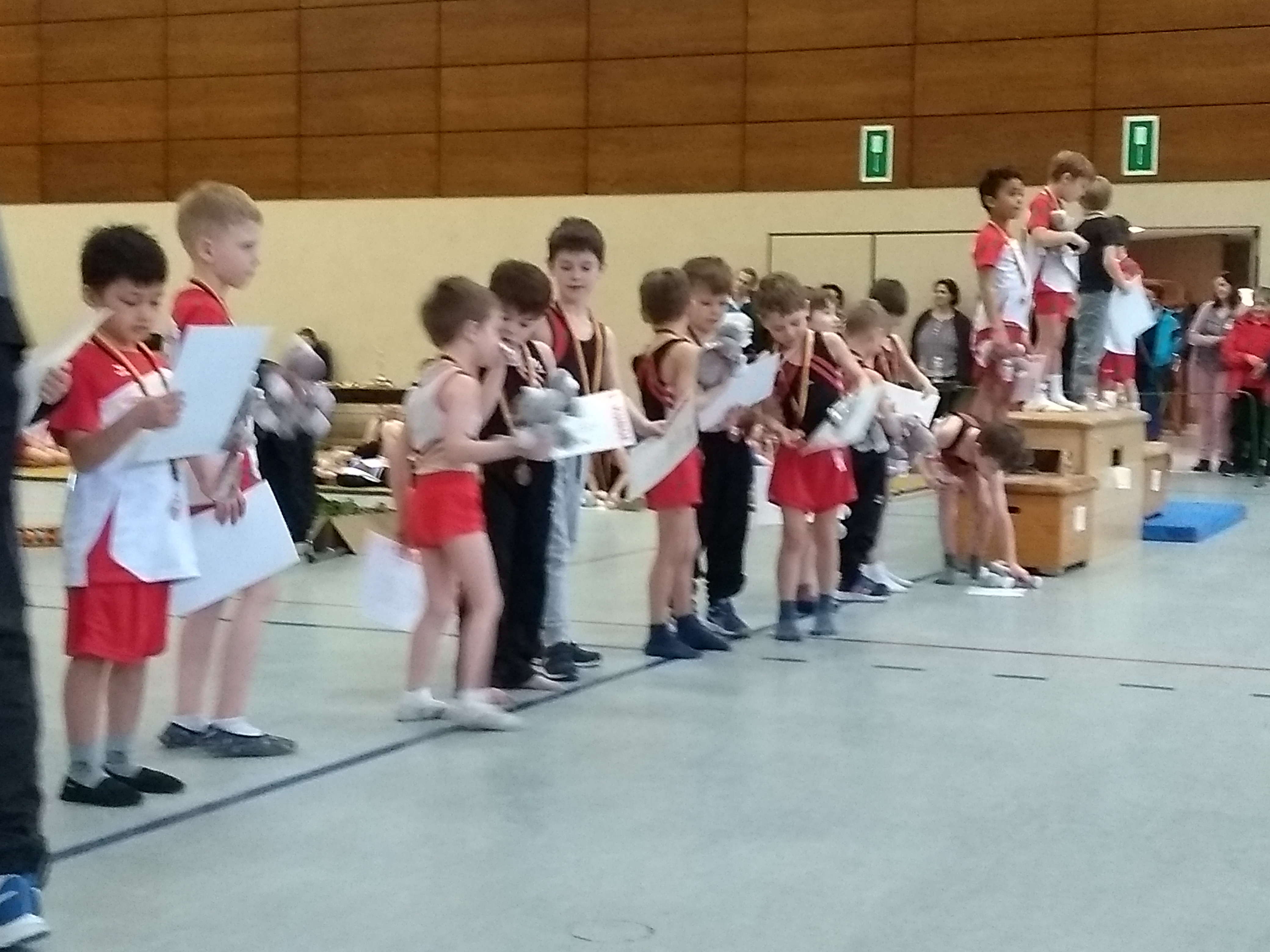 Die Jahrgänge 2009 und 2010 mussten an Reck, Boden und Sprung eine Übung zeigen und noch 3 zusätzliche Disziplinen (Klimmzüge, Standweitsprung, Wendesprint) ausführen.